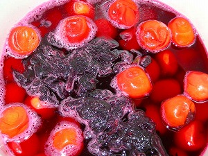 水が上がってきたので早速赤ジソを買ってきて漬け込む。
