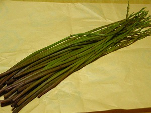 至極簡単、茎から葉を取り茹でて食べるか漬物にする、あるいは叩き、