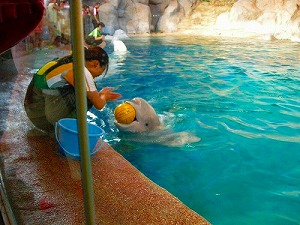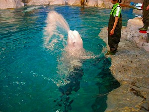 イルカショーもすばらしい、ベルーガの愛くるしいしぐさがたまらない。