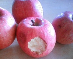 りんご10個の中の一個がネズミにかじられたような痕跡が