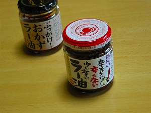 そして今日は桃屋の「辛そうで辛くない少し辛いラー油」もあった。