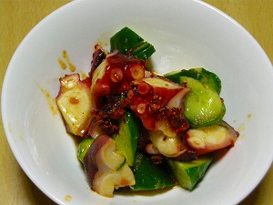 今日は叩きキュウリと茹タコを桃ラーであえて見た。