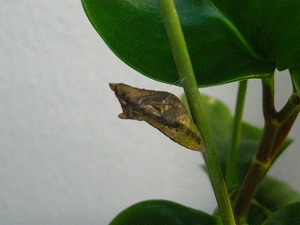 こちらは園芸用の細い棒で蛹になってすでに羽化する寸前で