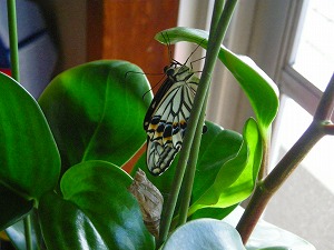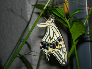 いるのだ羽化したばかりのナミアゲハが、羽根が乾くまではしばらく眺める事が出来る。