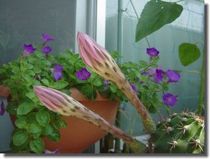 忘れ去られていたサボテンの蕾 あれよあれよと大きくなり 昨夜から今朝にかけて 見事に花開いてくれた。