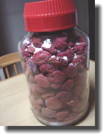 やっと漬け込んだ梅干を干し、保存にこぎつけた。 失敗したと思う事、梅の大きさ3Lサイズ、 大きすぎて可愛げげが無い と言うか、食べる時に大きすぎて 苦労しそうなんだ、半分食べて残すとか・・トホ 大瓶に8キロ全部入った。 減塩が心配で上から塩を振りかけてフタをした。