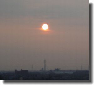 雲の多い朝、ぼんやり眺めていたら日の出から 大分たっているだろう太陽が雲の合間から突然顔をだした。 ちょっと幻想的だったのでパチリ。 でも思うままには写ってくれない。