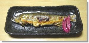夕飯は簡単に鮎の塩焼きと味噌汁、超シンプル、