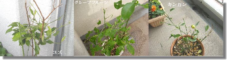 ユズの木、キンカン、グレープフルーツの木にと