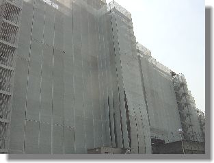 3月半ば、足場が組まれネットが張られた。