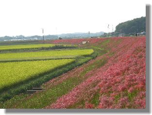 土手一杯のヒガンバナは壮観だった・・・がしかし色あせてちょっと残念なり。
