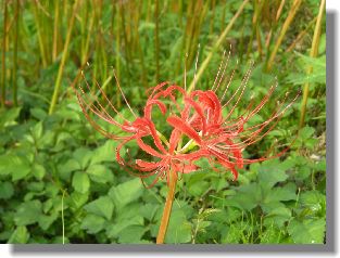 所々に出遅れたヒガンバナが主張して咲いていた。