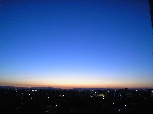 ほんの一瞬夜明けの瞬間日暮れの瞬間に鮮やかなブルーの空になる、こんな情景の事だ。