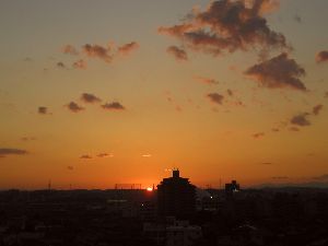 この写真はマンションの窓からの夜明けです♪