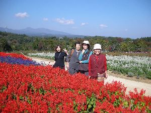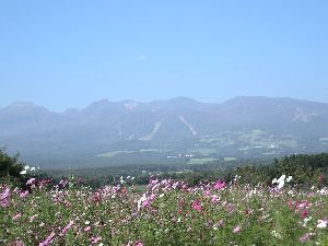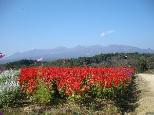 コスモスと那須連山、美女とサルビア