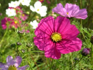 コスモス、サルビア、ケイトウ、ハーブ