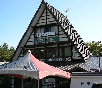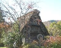 ドライブイン「みぼろ湖」の駐車場の隅に合掌造りの小さな家があった。