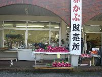 ドライブイン「ささら館」で赤カブをどっさり買い込む。