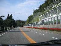 道路沿いにはサルビアの花が植えられていてドライバーの気持ちを癒してくれる。