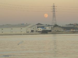 暗くなってきて真ん丸いお月様が海面に反射して綺麗だった