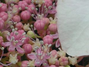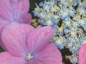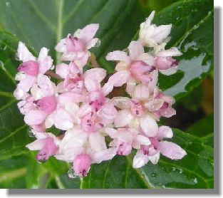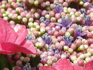 アジサイの木のつけ根からでた枝に咲いてる花がほかの花とちょっと違う