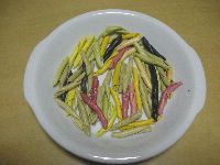 パスタ「トレッチェ・デロルト」(野菜畑のわら)色とりどりのパスタは野菜のエキス入り